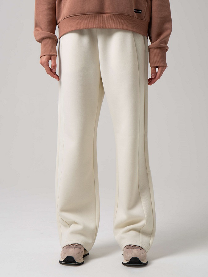 Прямые брюки выполнены из плотного двухстороннего трикотажа на основе хлопка и полиэстера, хорошо пропускают воздух и впитывают влагу.