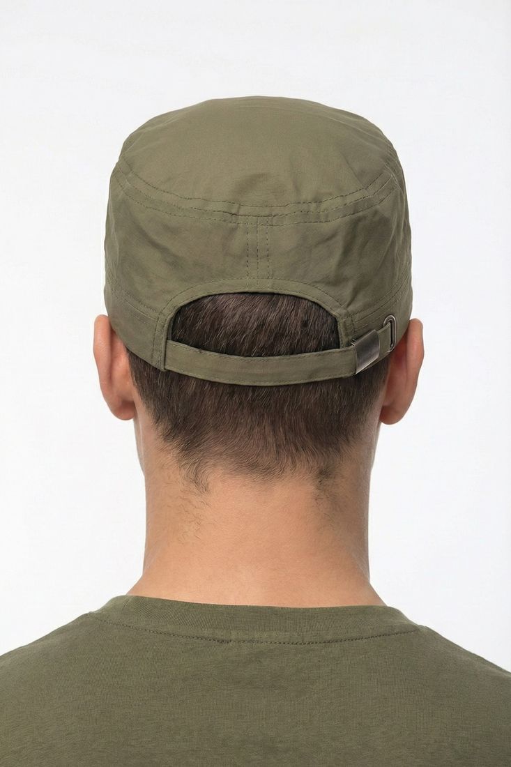 Объем регулируется на затылке при помощи хлястика и пряжки.