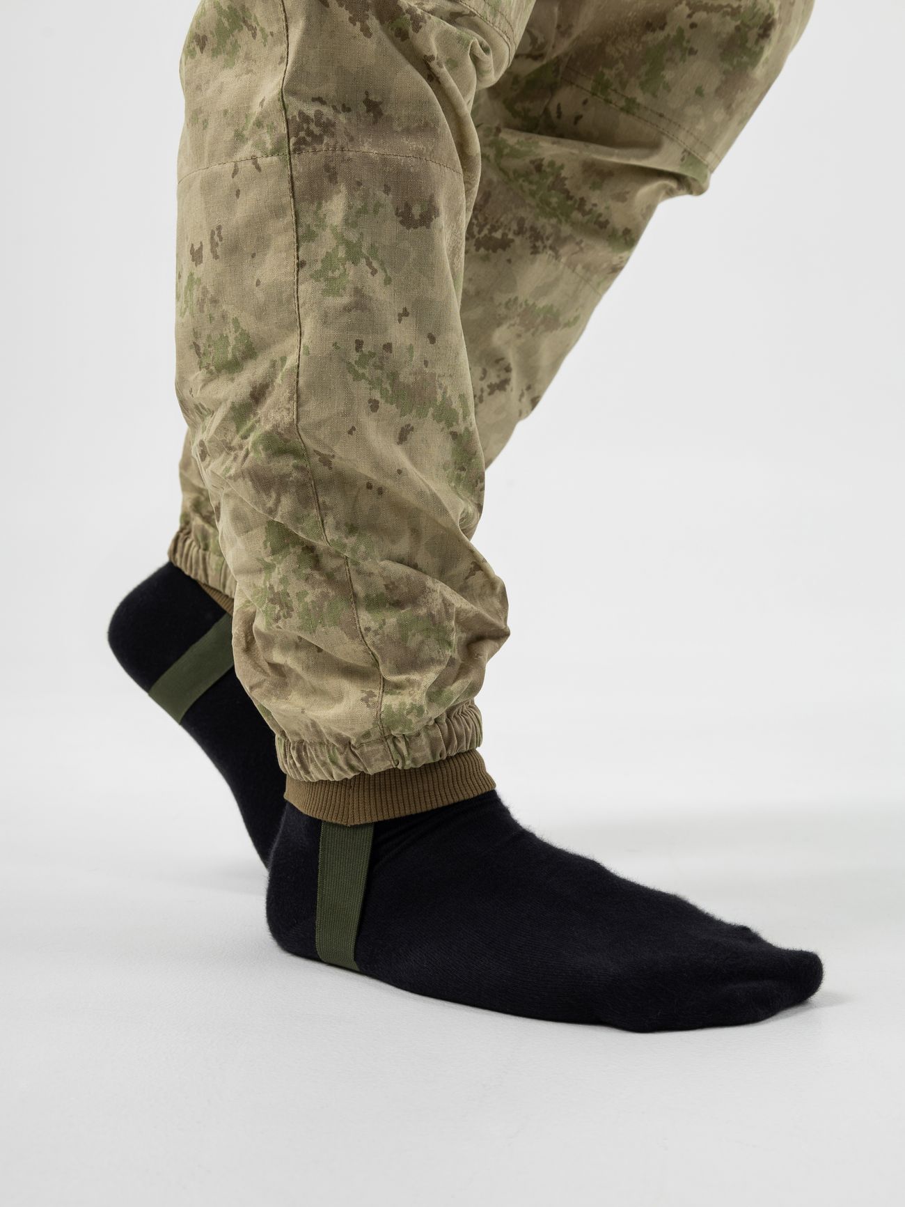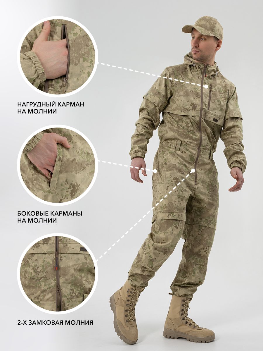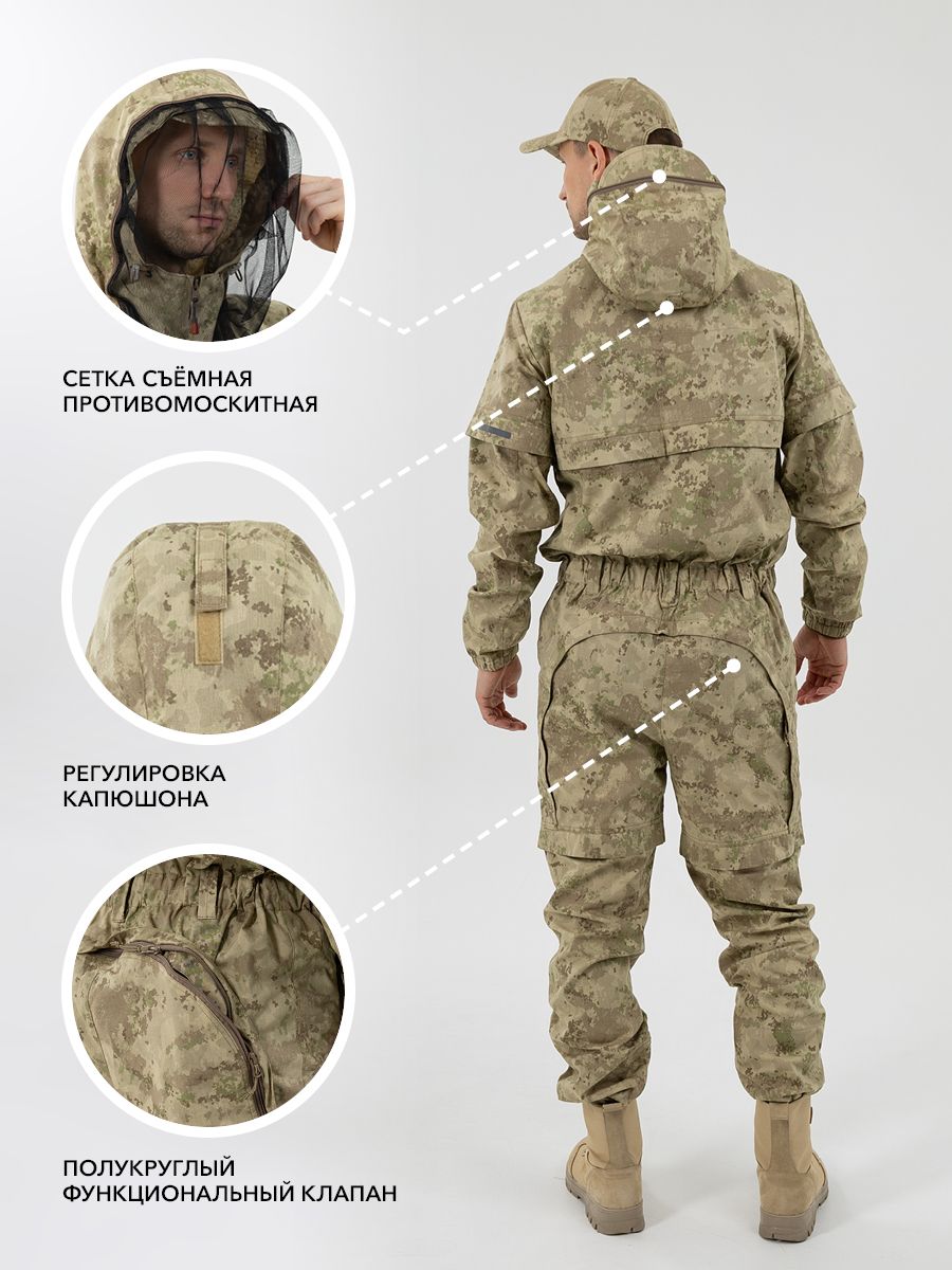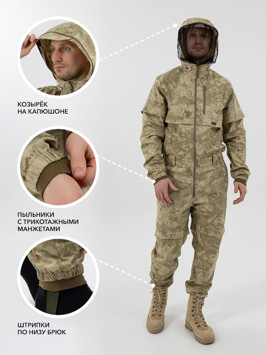 - Плотные трикотажные манжеты на брюках и рукавах не дадут насекомым пробраться внутрь.