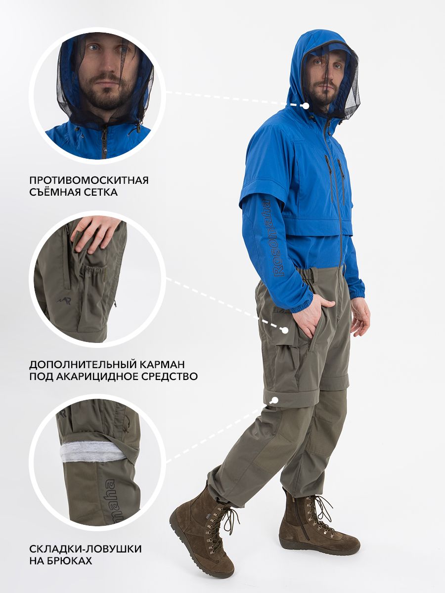 Функциональный мужской комбинезон для защиты от клещей, разработанный совместно с Андреем "АБВГАТ", опытным блогером-экспертом и путешественником по дикой природе России. Защитит от укусов клещей, комаров и других кровососущих насекомых.