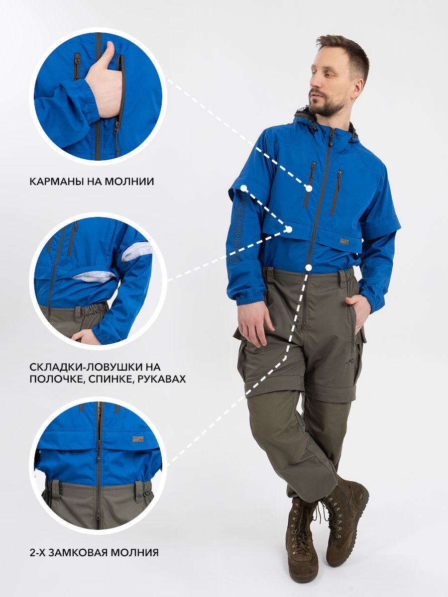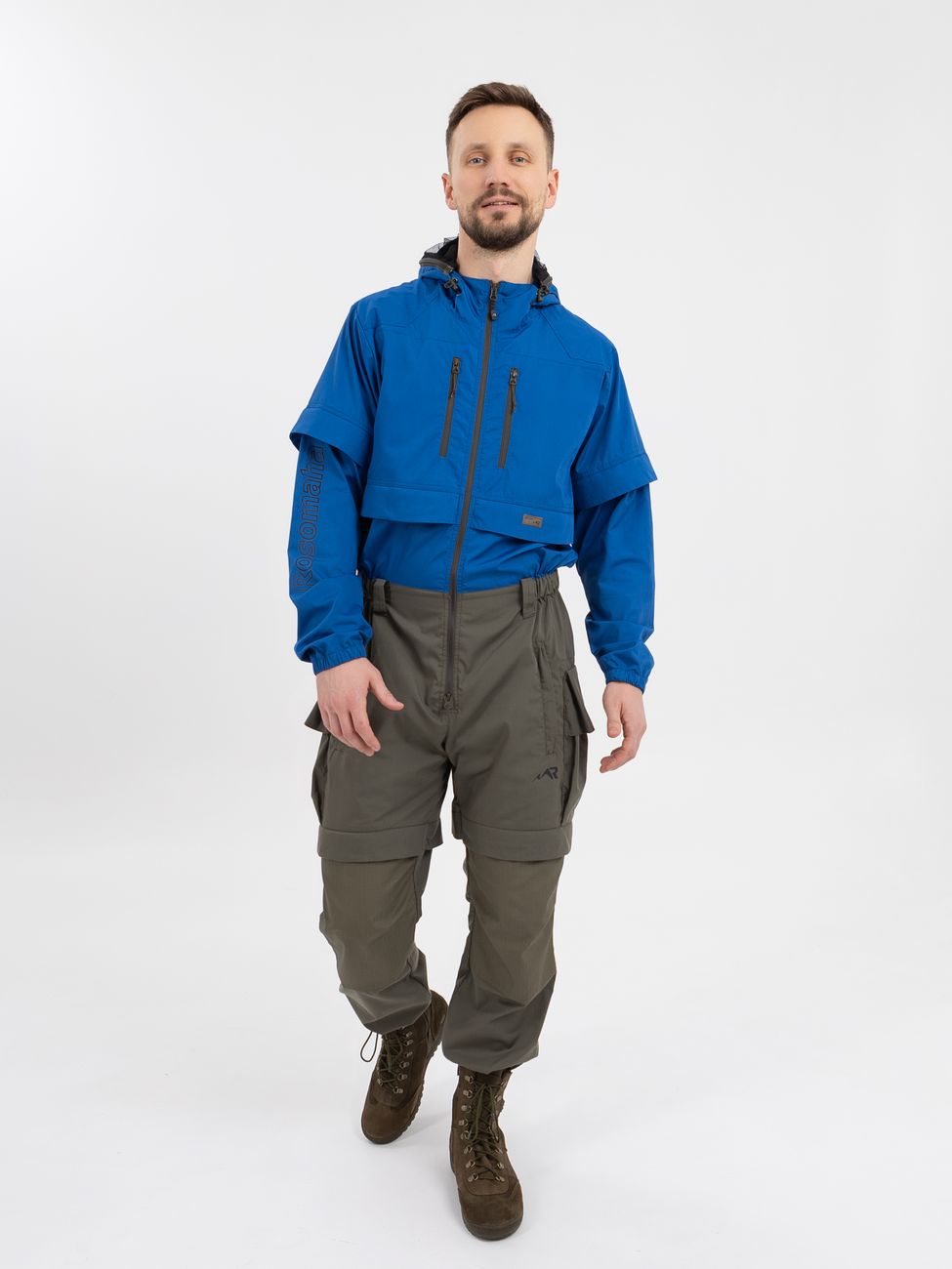 - Для перехода неглубоких рек вброд есть возможность повернуть брючины. Точно так же можно закатать рукава, защитив их от намокания и загрязнения.
