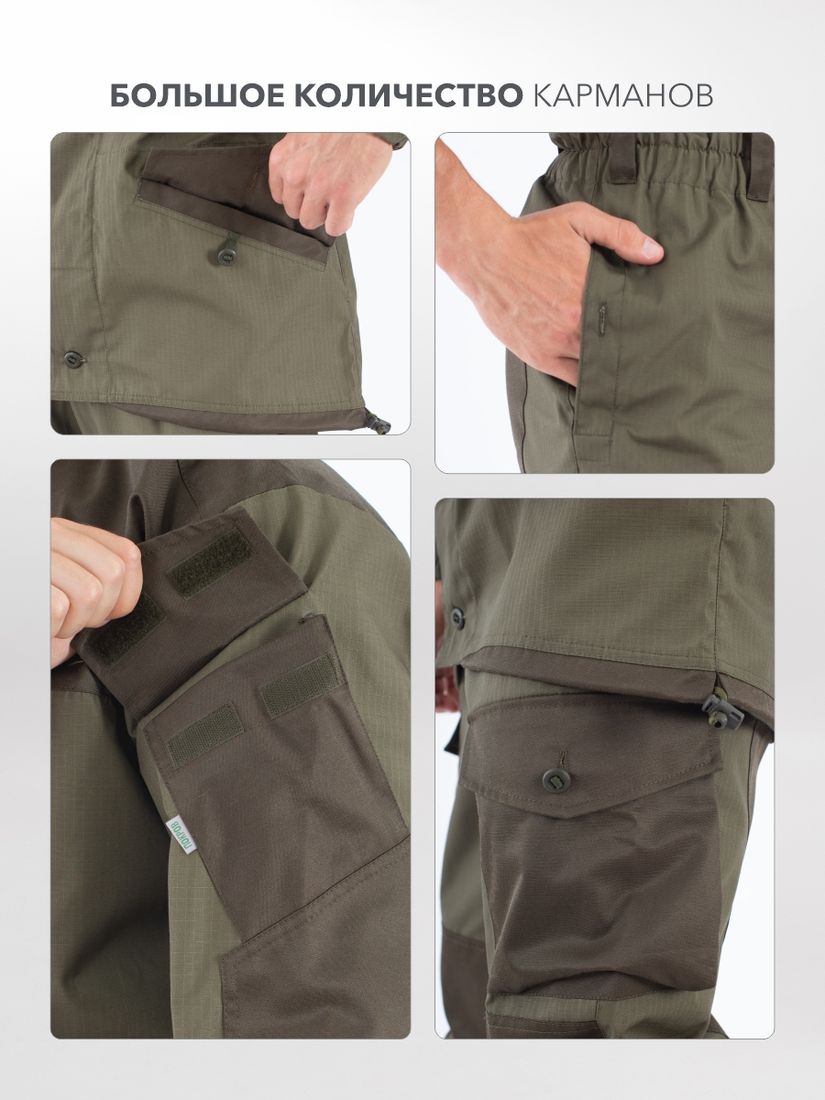 Ткань: рип-стоп смесовая (35% хлопок, 65% ПЭ), плотность 200 г/мкв. Отделка: грета (53% хлопок, 47% ПЭ).