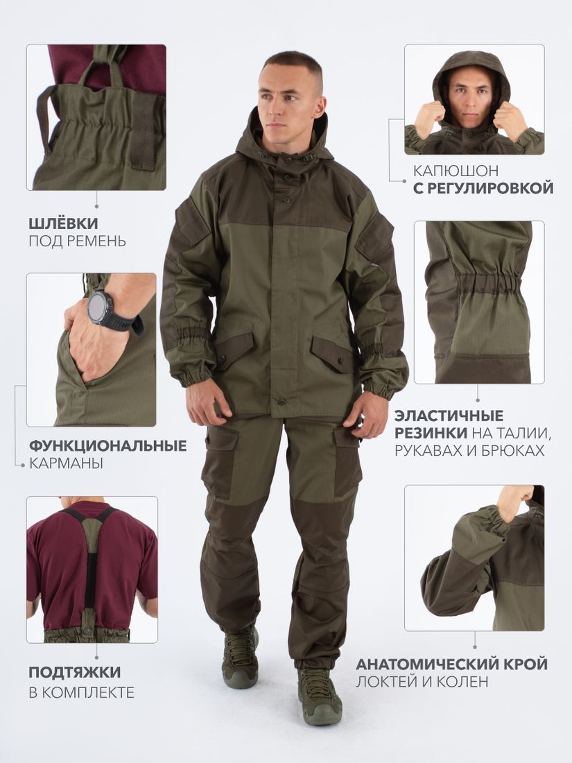 Мужской летний костюм "Горка" - это адаптированная версия костюма для гражданского использования. Изготовлен из армированного материала и предназначен для охоты, рыбалки, бушкрафтинга и активного отдыха в летний сезон.