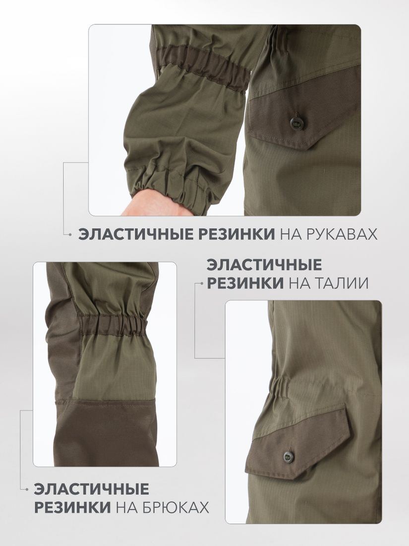 • Эластичные резинки по талии под коленом на задней части брюк обеспечивают плотное прилегание и снижают парусность костюма при сильном ветре.