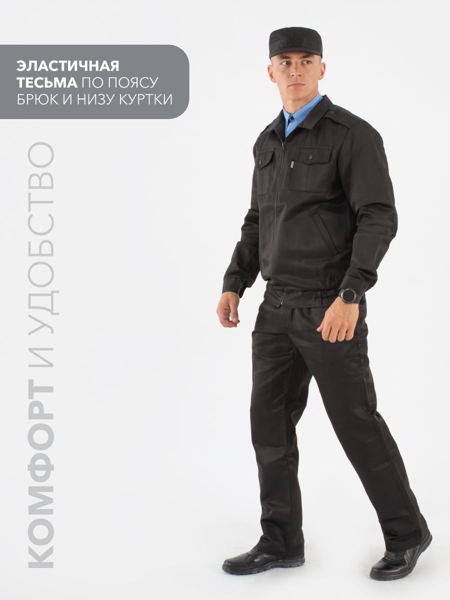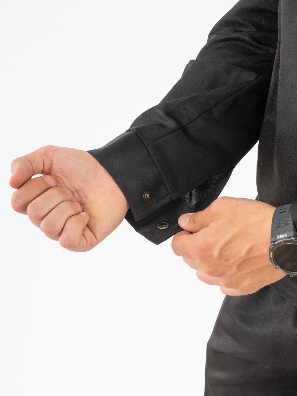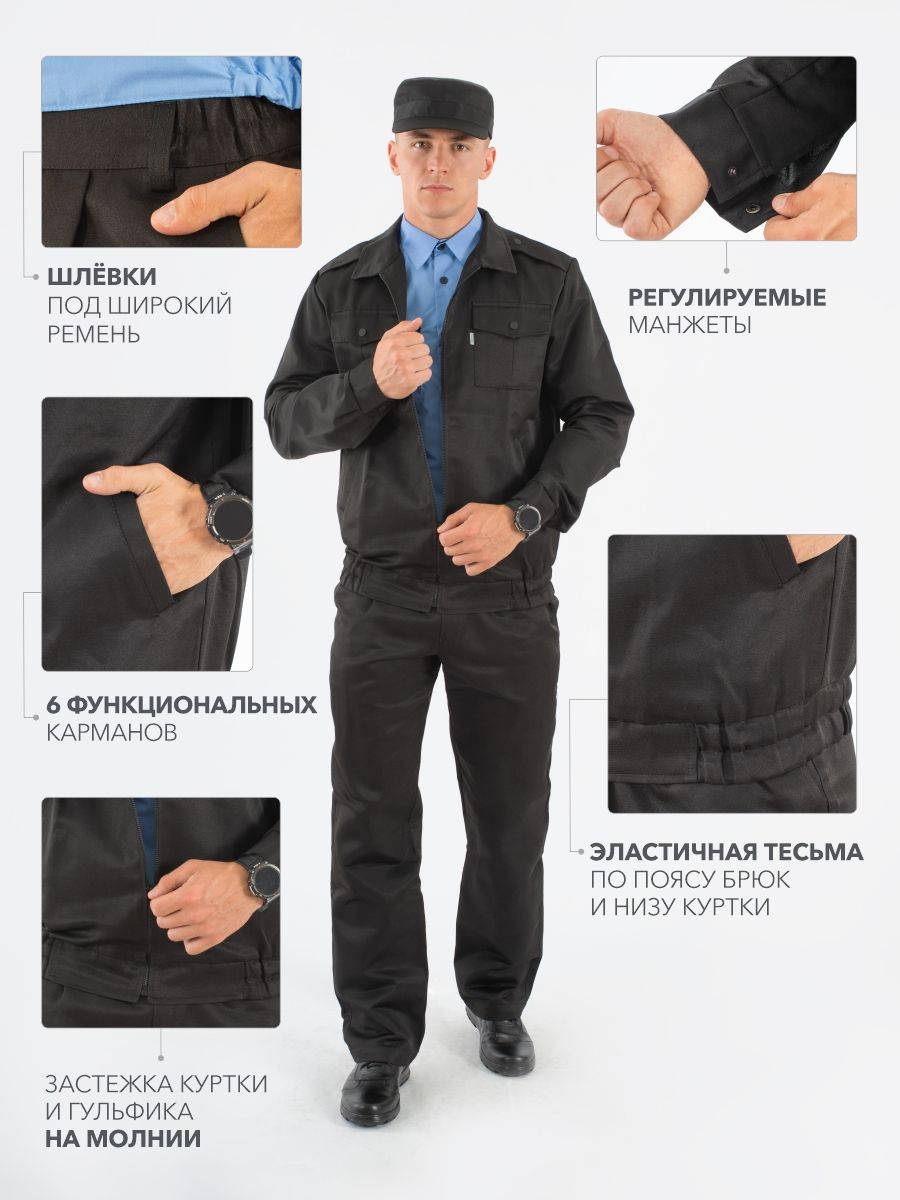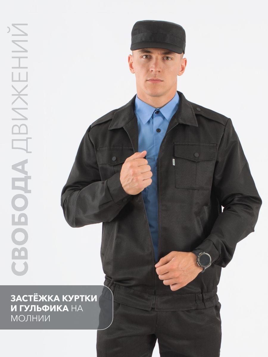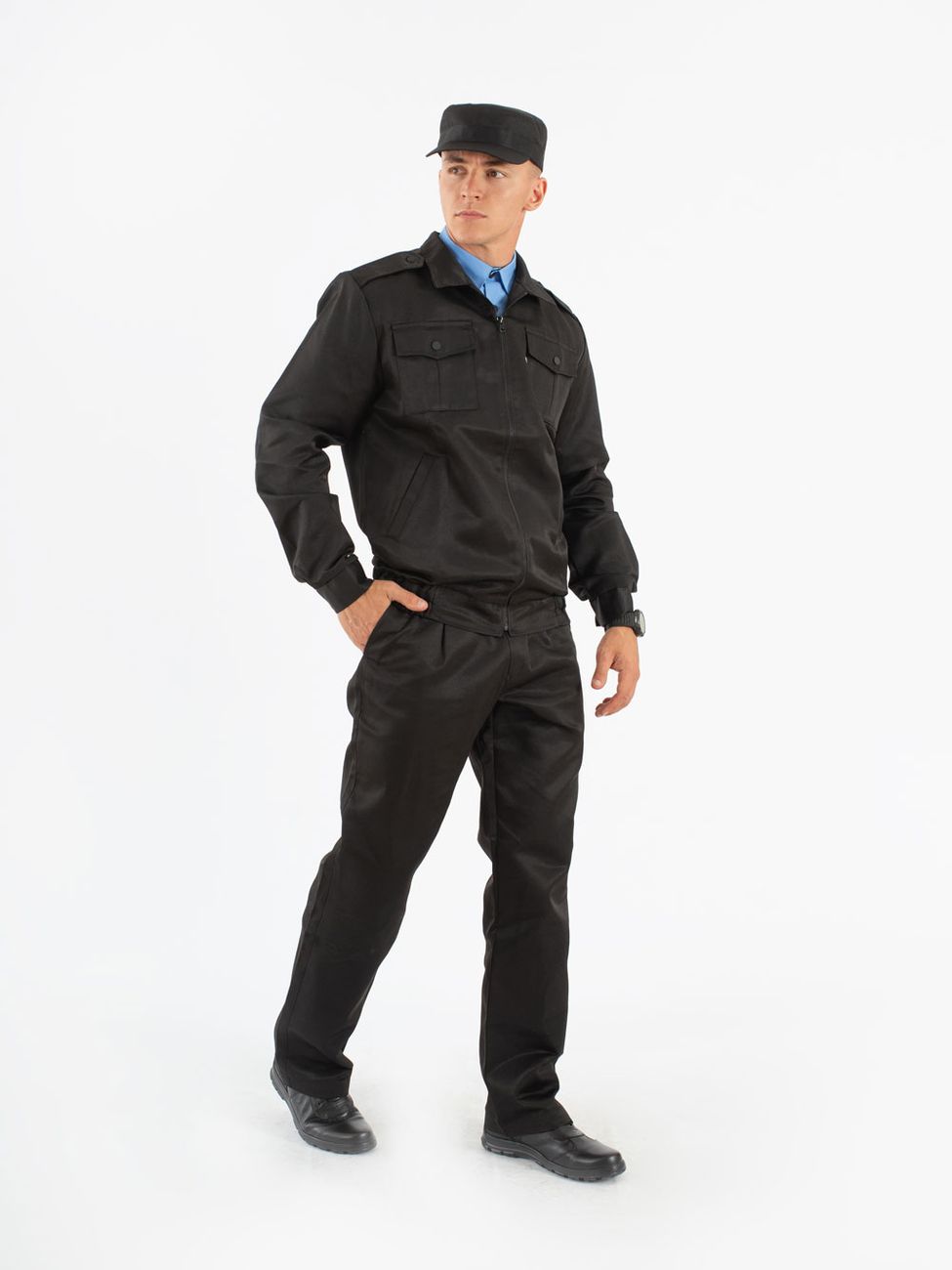 Центральная застёжка на «молнию». На полочках четыре кармана: два нижних, два нагрудных с клапанами на кнопки.
