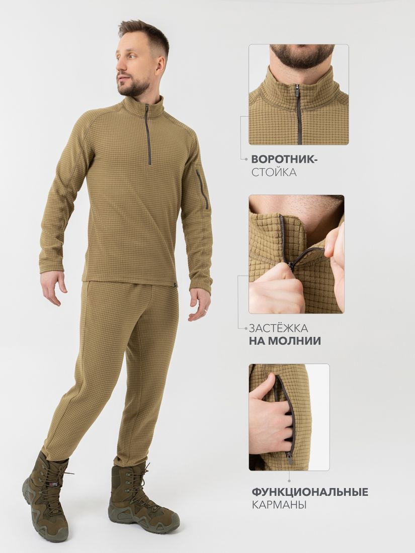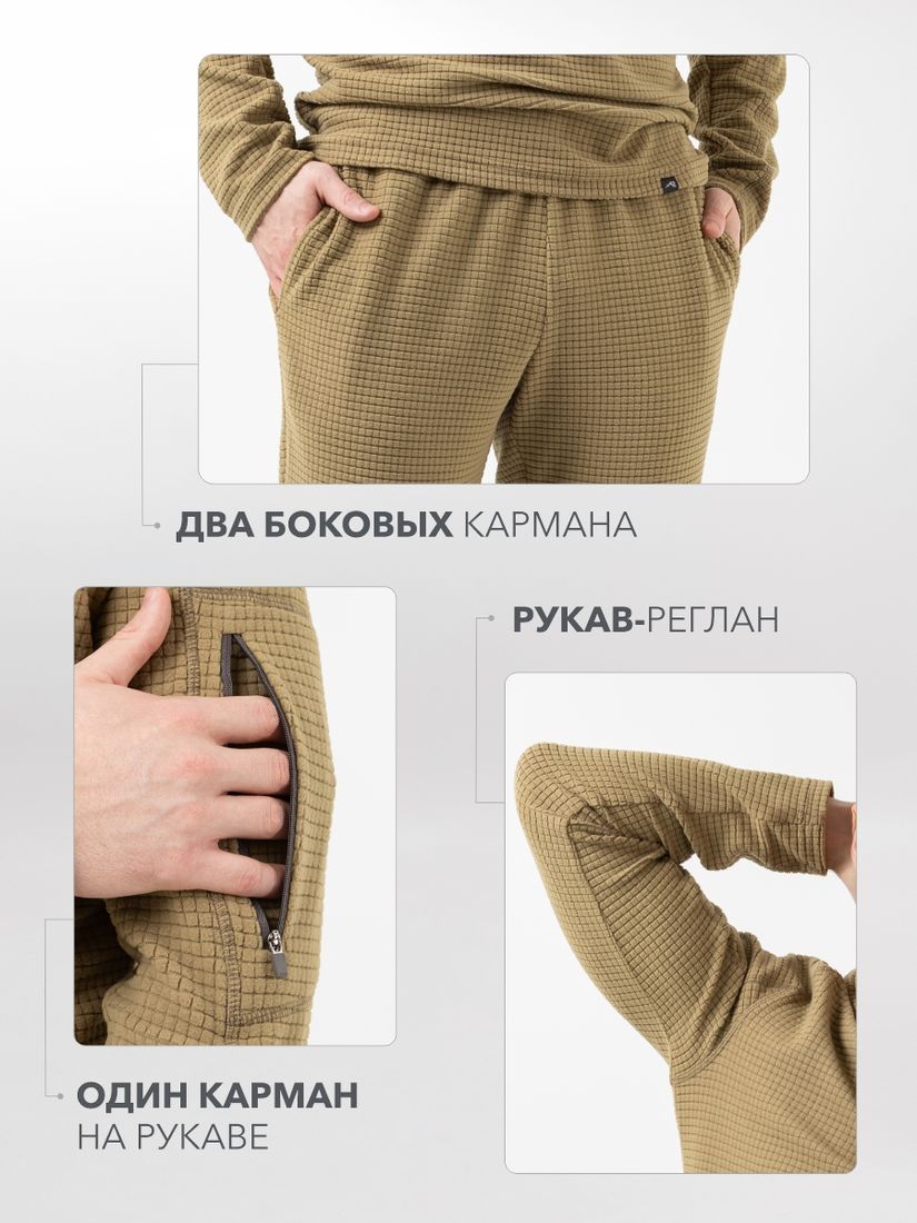 Мужской костюм из тонкого влагоотводящего флиса создан для максимального комфорта в любых условиях. Благодаря универсальному дизайну его можно использовать, как утепляющий слой в зимний период, так и базовый в прохладную погоду летом и в межсезонье.