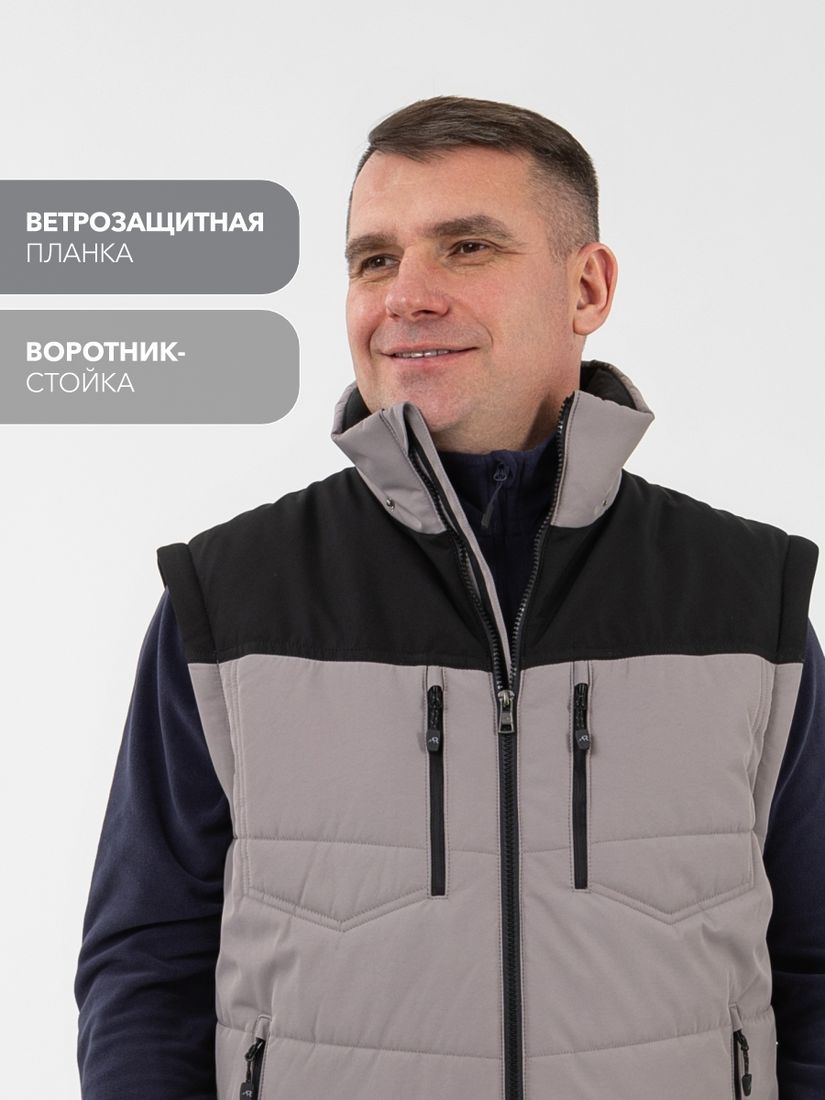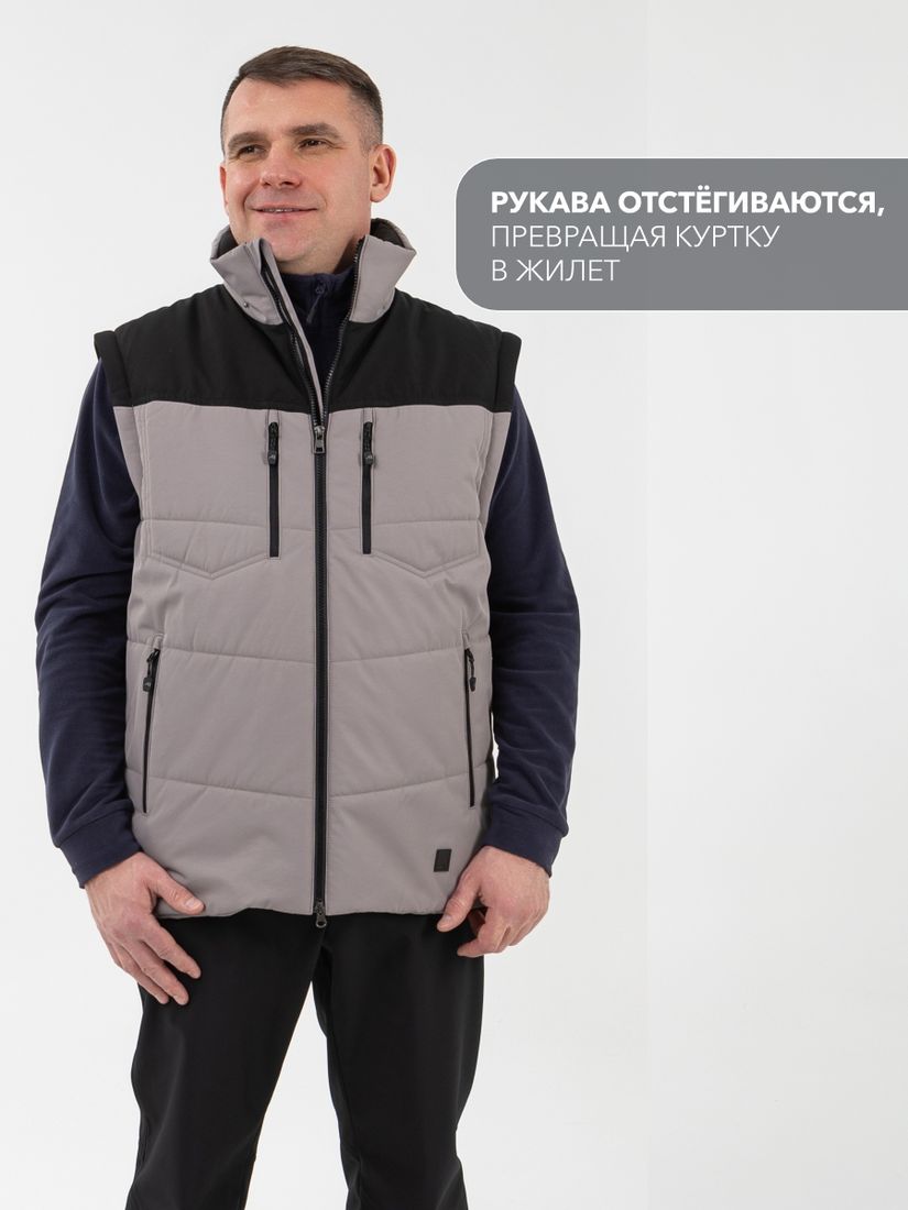 - Уникальная система трансформации для адаптации к изменениям погоды: после отстегивания рукавов получается легкий и мобильный жилет.