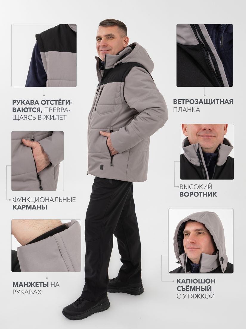 Мужская утепленная куртка-трансформер "Кальжир" создана для непредсказуемой погоды. Она сочетает в себе тепло, защиту от ветра и влаги, и невероятную практичность. Это идеальный выбор для любителей активного отдыха, туристов и всех, кто ценит многофункциональность и надёжность.