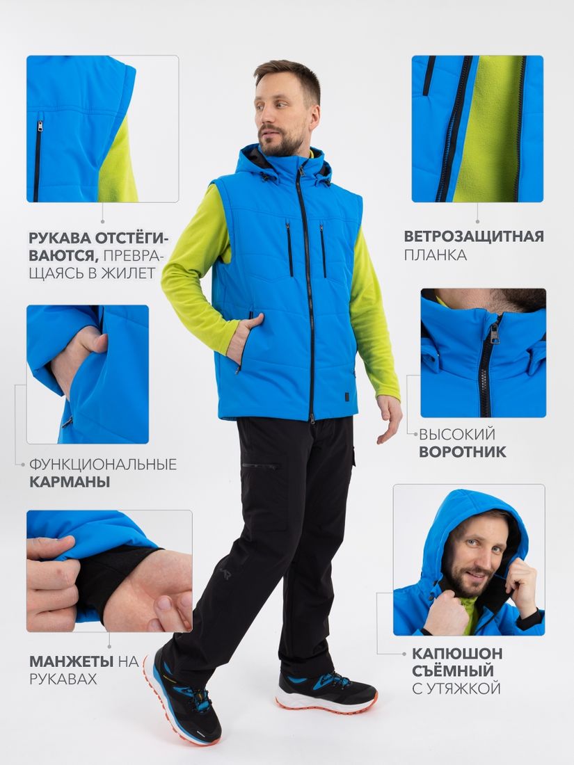 - Уникальная система трансформации для адаптации к изменениям погоды: после отстегивания рукавов получается легкий и мобильный жилет.