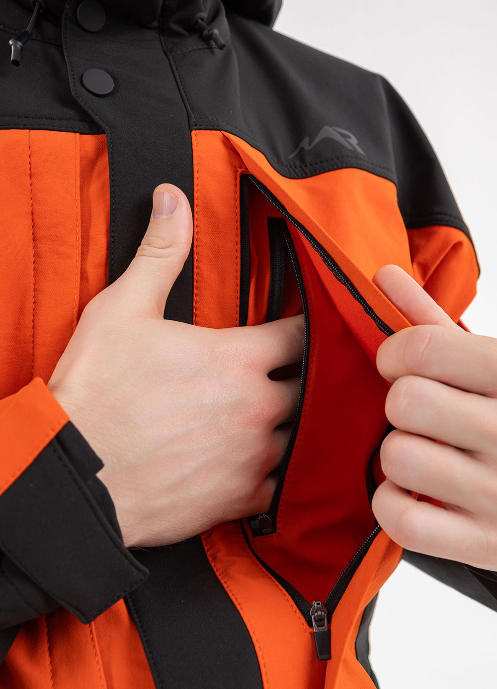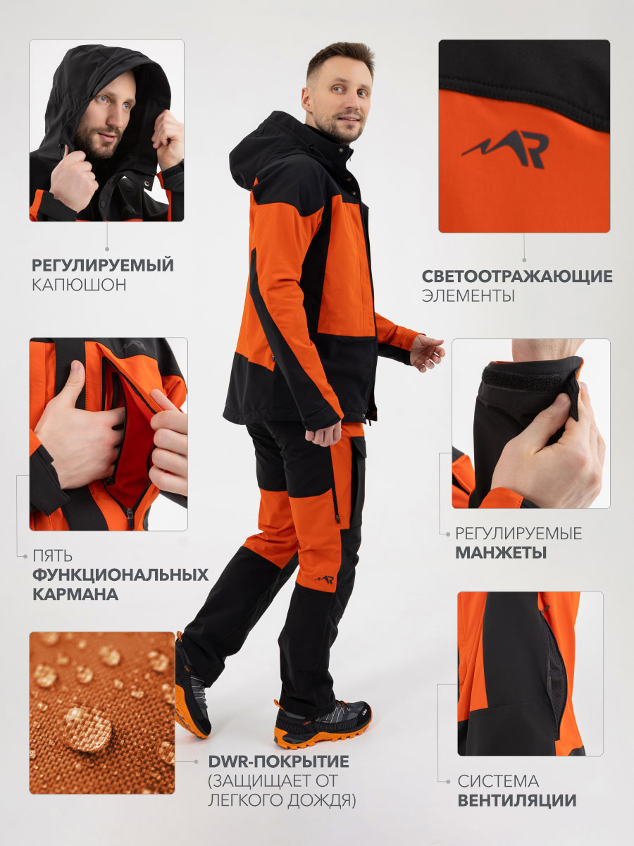 Ткань: Softshell (90% ПА, 10% спандекс), плотность 215 г/мкв, DWR. Отделка: Softshell (100% ПЭ механический стрейч), плотность 200 г/мкв.