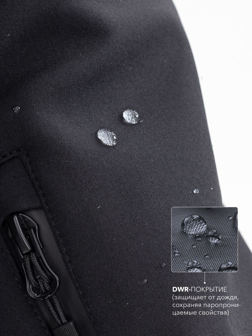 • Благодаря мембранной ткани и DWR-покрытию ткань защищает от дождя, сохраняя паропроницаемые свойства. Швы не проклеены.