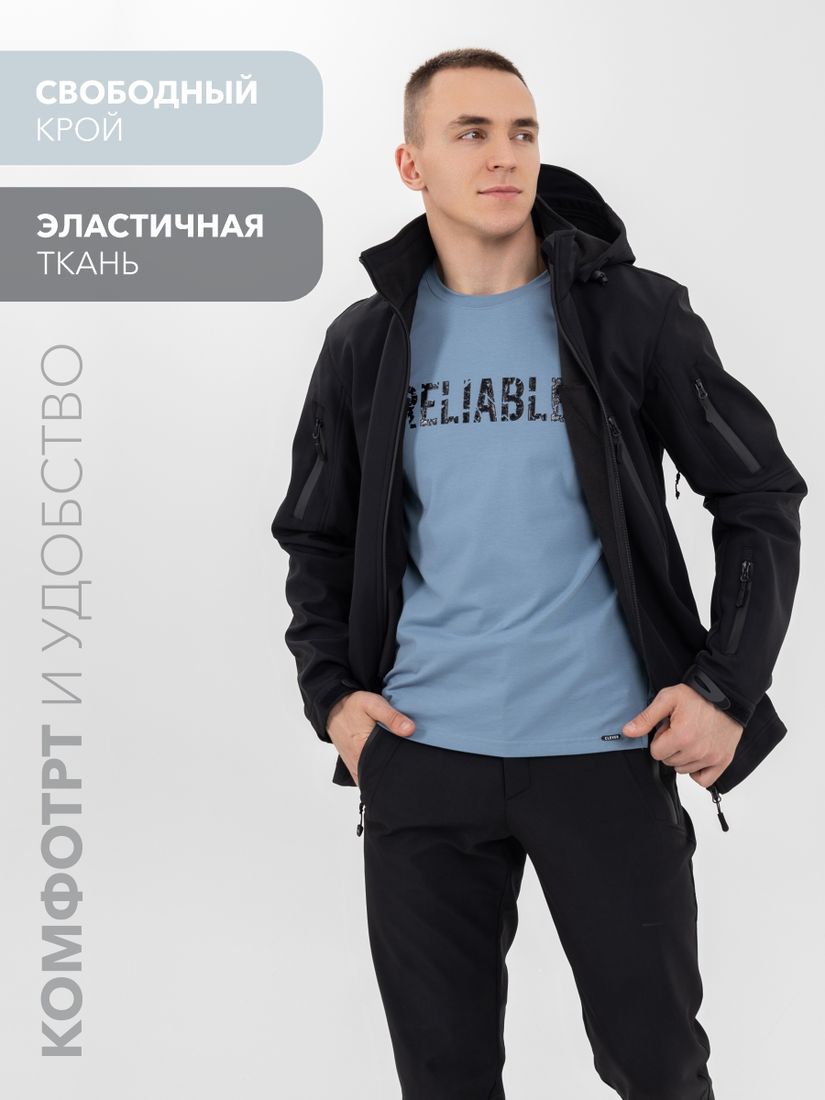 Мужская куртка "Алдан" из трехслойного softshell-a предназначена для туризма и активного отдыха в межсезонье.