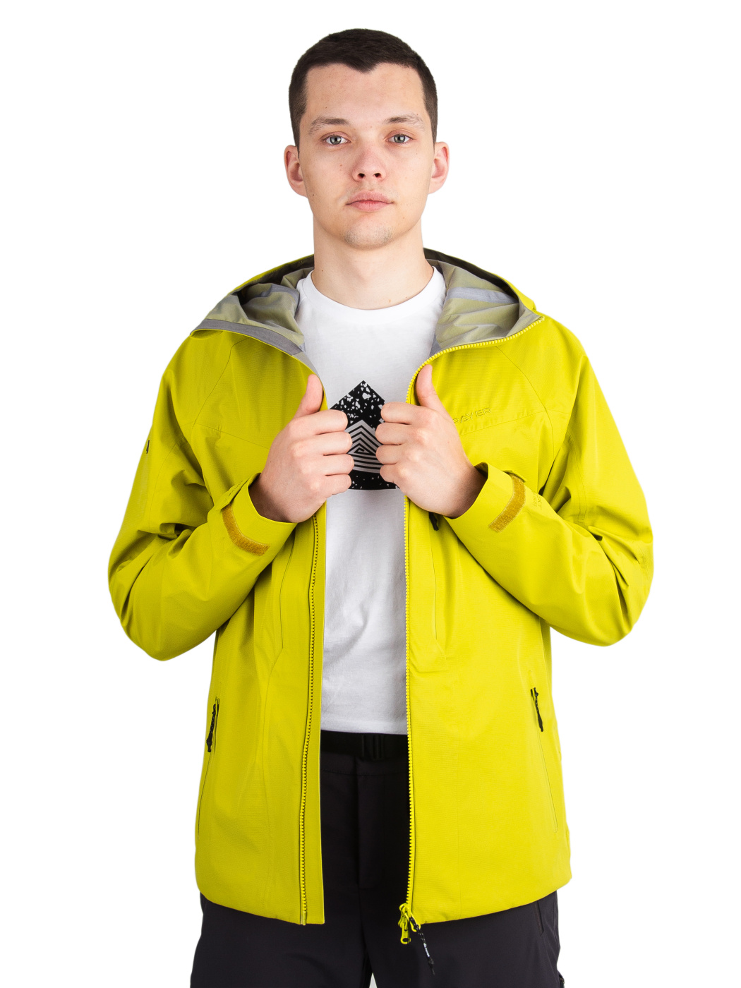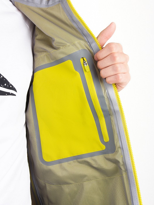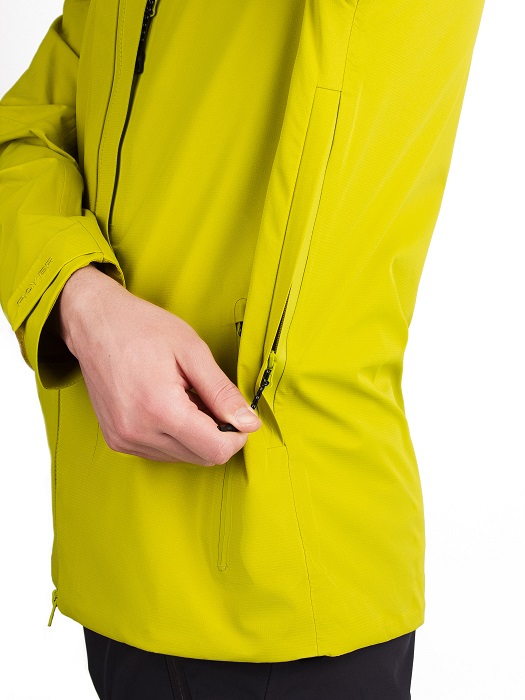 Одной из особенностей этой куртки является трехслойная мембранная ткань, которая придает изделию надежность и долговечность. Верхняя часть выполнена из плотного и прочного нейлона, а мембрана Protekt 10000/10000 и армирующая сетка из нейлона предотвращают растягивание и сохраняют свои свойства даже под сильным давлением ветра и воды. Дополнительная влагозащита обеспечивается ветрозащитной планкой под центральной молнией.