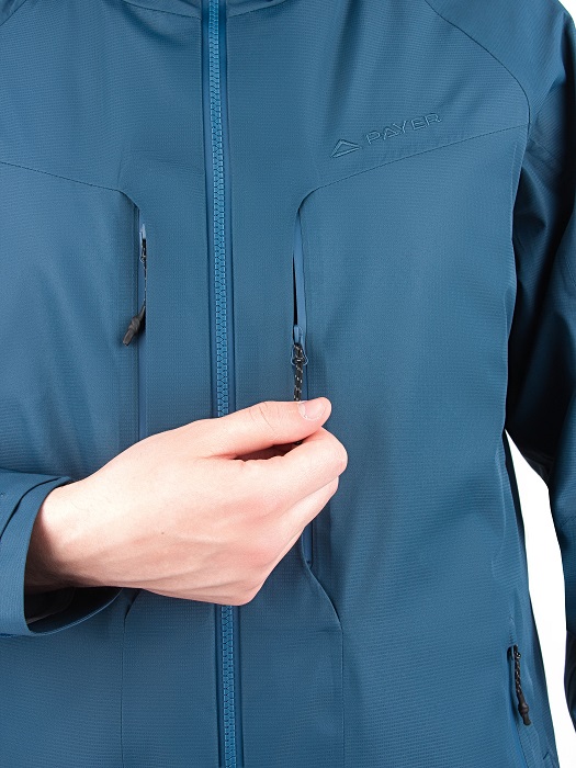 Одной из особенностей этой куртки является трехслойная мембранная ткань, которая придает изделию надежность и долговечность. Верхняя часть выполнена из плотного и прочного нейлона, а мембрана Protekt 10000/10000 и армирующая сетка из нейлона предотвращают растягивание и сохраняют свои свойства даже под сильным давлением ветра и воды. Дополнительная влагозащита обеспечивается ветрозащитной планкой под центральной молнией.