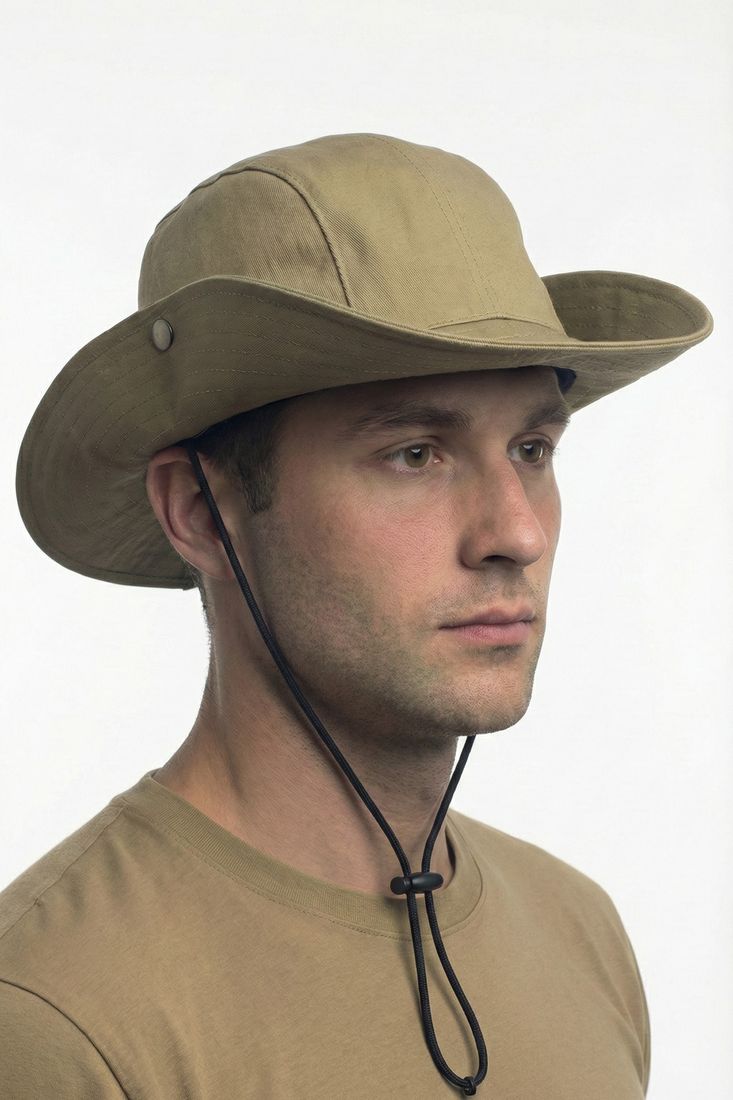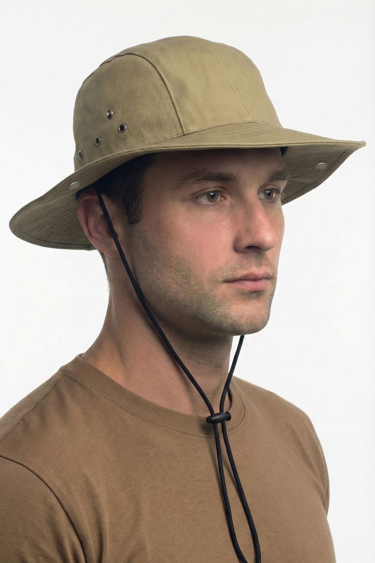 Также панама фиксируется под подбородком при помощи шнура с фиксатором.