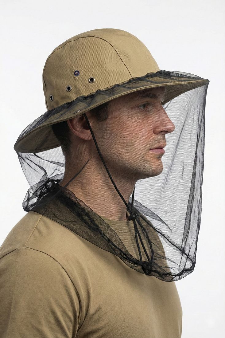 Панама рассчитана на солнечную погоду, дополнена накомарником (сеткой), защищающим лицо и шею человека от укусов насекомых.