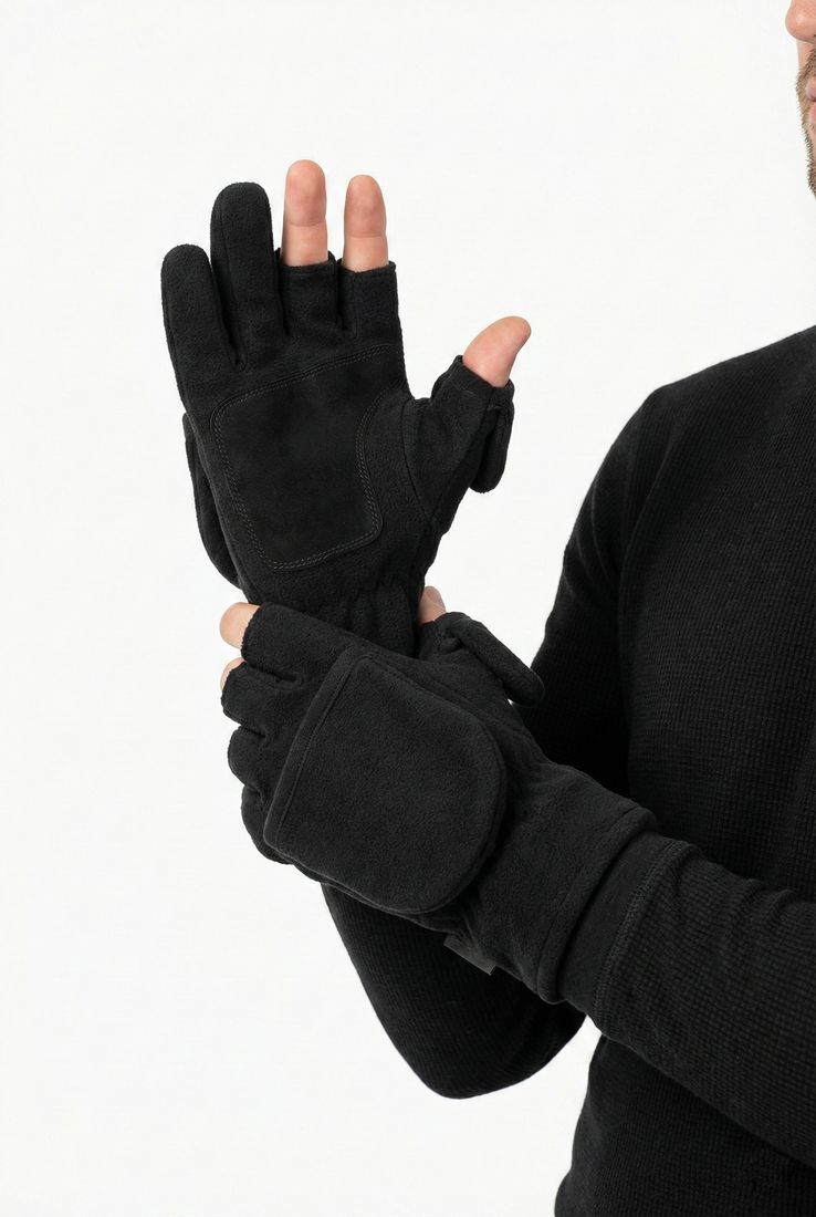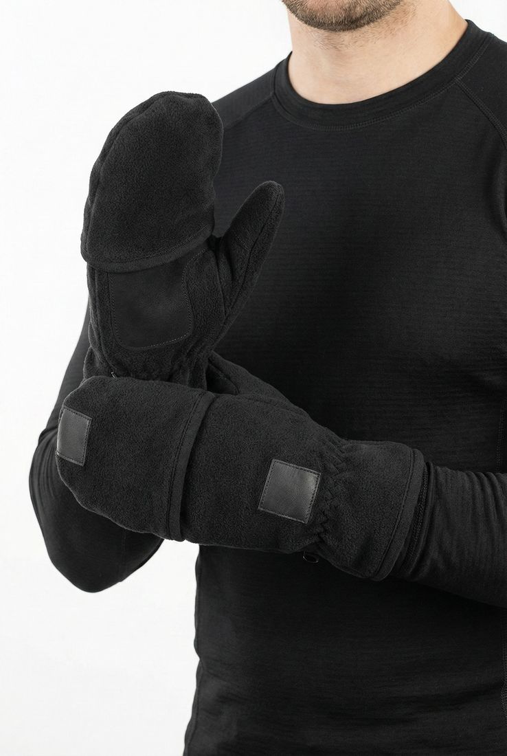 Предусматривает два способа эксплуатации: с надетой верхней частью, закрывающей пальцы (варежки), и с откинутой верхней частью (перчатки). В положении «перчатка» указательный и средний пальцы открыты.