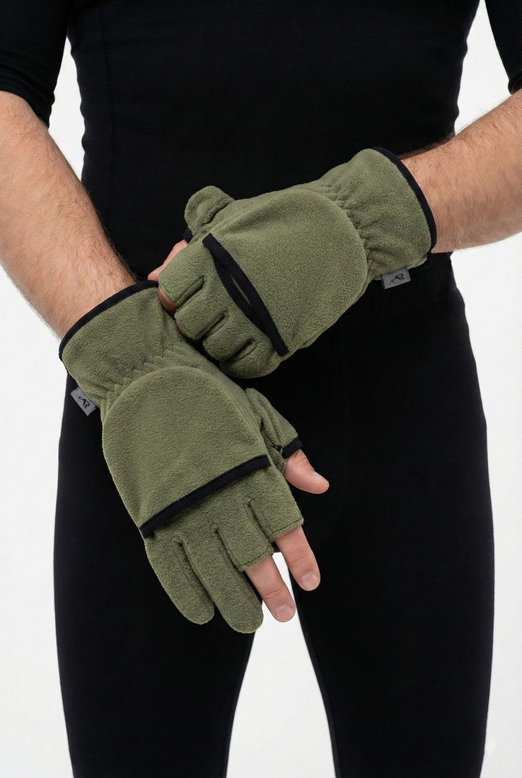 Предусматривает два способа эксплуатации: с надетой верхней частью, закрывающей пальцы (варежки), и с откинутой верхней частью (перчатки). В положении «перчатка» указательный и средний пальцы открыты.