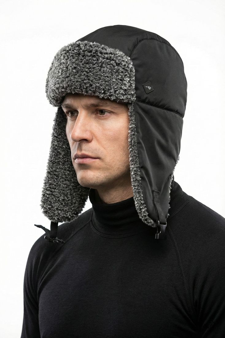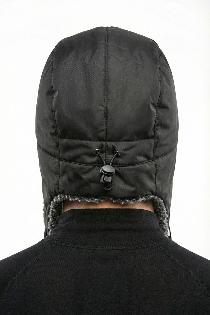 Шапка утепленная, состоит из двух боковых деталей и двух средних, ушек, нижней части.