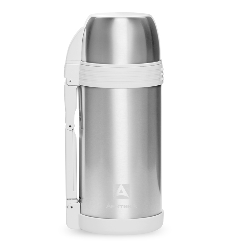Термос Арктика 205-1500 представлен в компактном серебристо-белом дизайне.